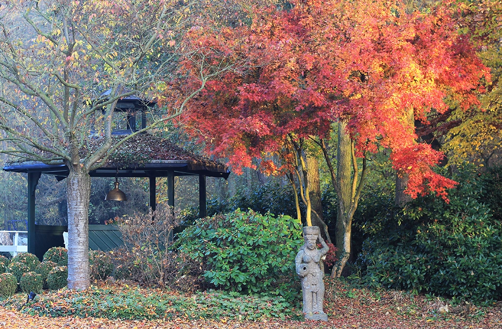 If there is space, the darker season can be colorfully showcased with clever planting of grasses, late-flowering perennials and autumn-colored trees.Â